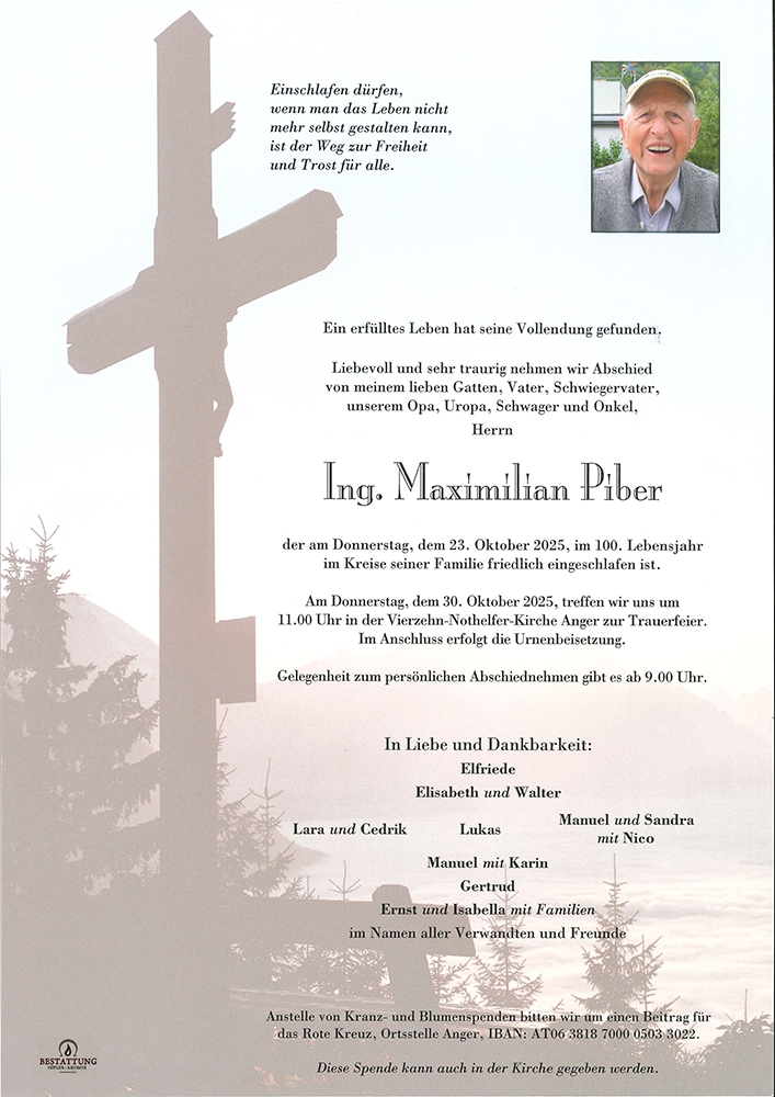 Mein herzlichsten Beileid. Ich dufte Herrn Piber als wirkliches Vorbild kennenlernen. Danke! Frieß E