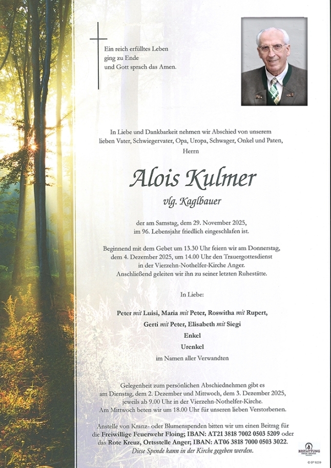 Aufrichtige Anteilnahme. Familie Sallegger-Falkenbauer