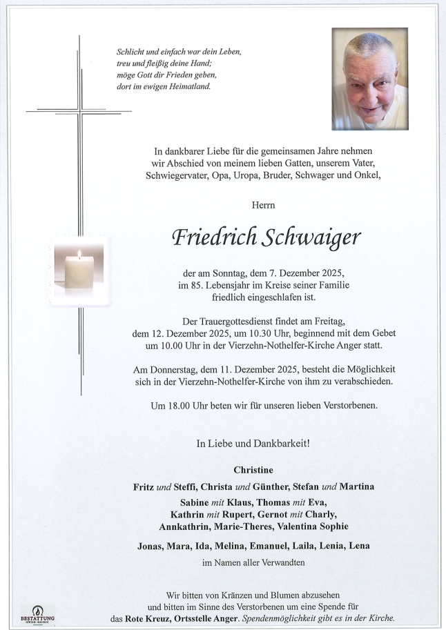 Aufrichtige Anteilnahme Fam. Schweighofer
