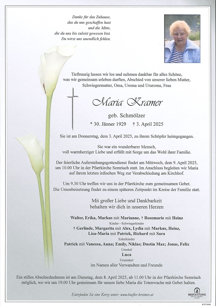 Unser aufrichtiges Mitgefühl Höller Maria & Margit