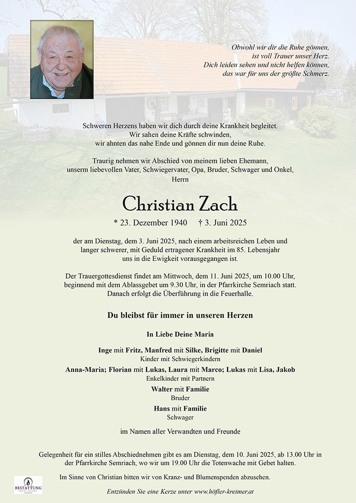 Lieber Christian Ruhe sanft in Gottes Hand. Cousine Inge und Walter.