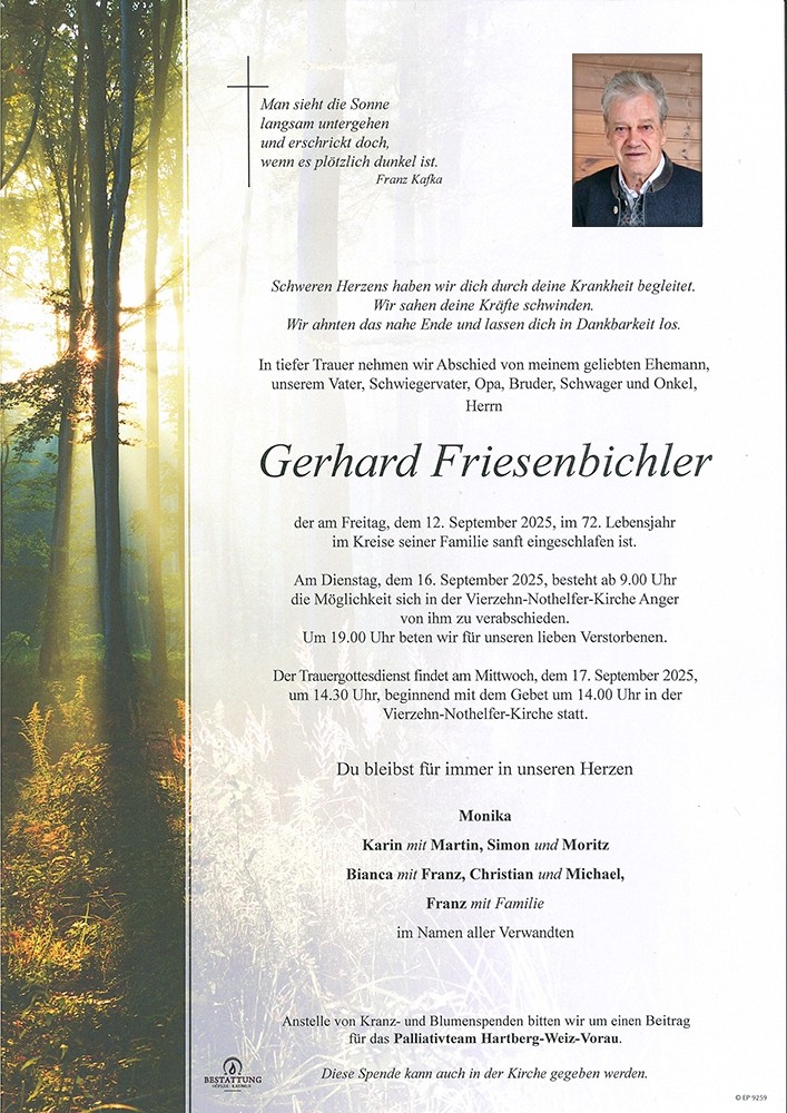 Herzliches Beileid und aufrichtige Anteilnahme Gerti und Fritu Schweigberger
