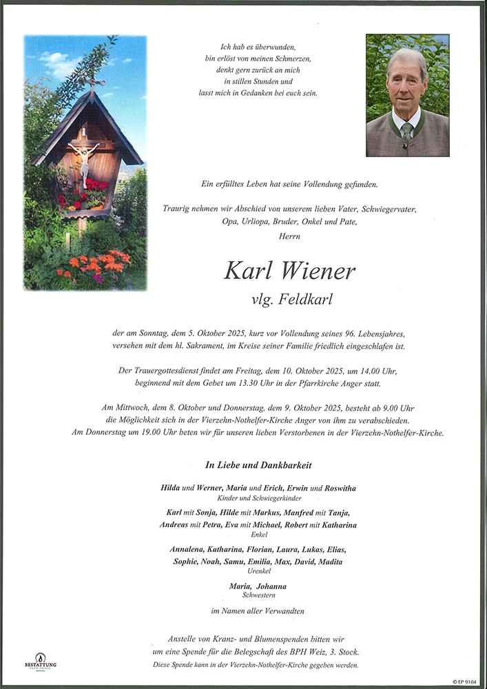 Aufrichtige Anteilnahme Maria Wiener Sepp Hausleitner