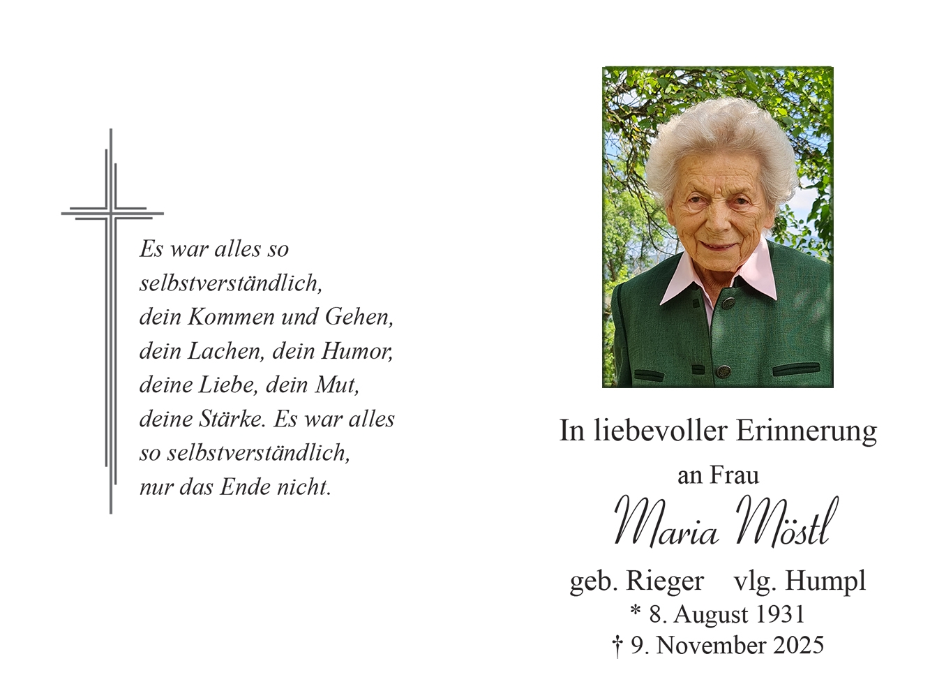 Ein Licht für deine letzte Reise, aufrichtige Anteilnahme der Familie Maria Rumpl u. Tendl Franz
