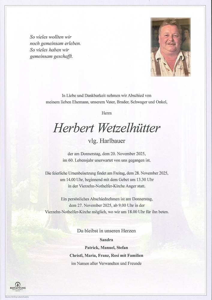 Unser aufrichtiges Beileid Fam. Herbert Schloffer
