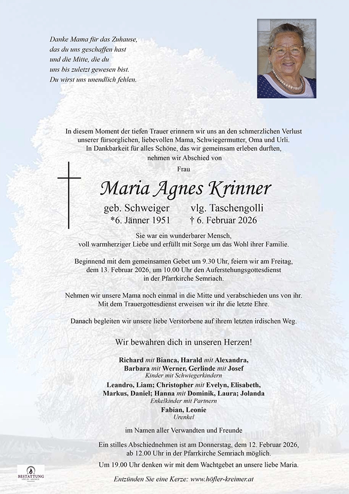 Unser Aufrichtiges Beileid Fam. Schinnerl Karnermichl
