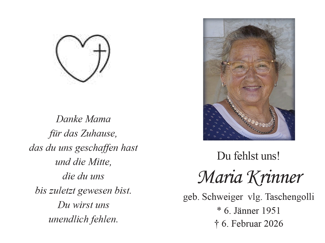 Aufrichtige Beileid! Luise Grossegger