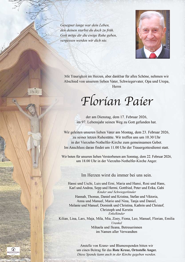 Mein aufrichtiges Beileid der Trauerfamilie. Christiana Polzhofer