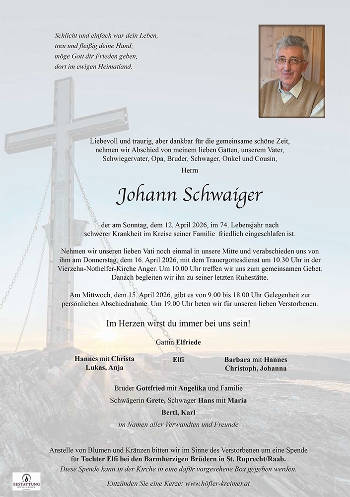 🕯️Ein aufrichtiges Beileid von Schwaiger Franz,Marianne Schwaiger und Hans.